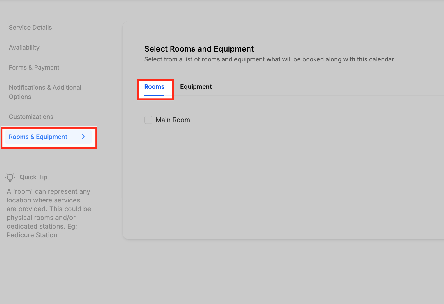 In the Rooms tab, you connect a physical space in your barbershop to the service. A room can represent a chair, booth, or station where the service is performed. For example, you might assign “Salon Chair 1” for haircuts and shaves, or “Styling Chair” for blow-drying and finishing. Assigning a room ensures that once a customer books the service, that specific chair or station is reserved and cannot be double-booked. This is especially useful for shops with limited seating, as it prevents multiple appointments from being scheduled in the same spot at the same time.