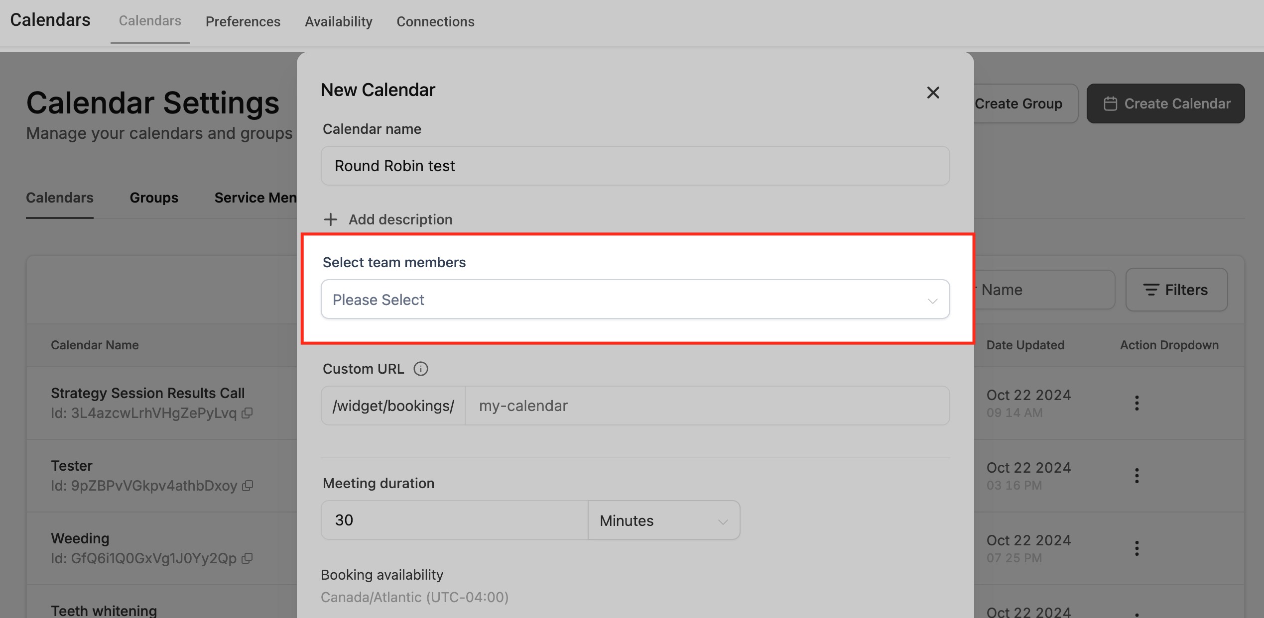 Creating a Round Robin Calendar ensures that appointments are automatically distributed among available team members. This step involves selecting the calendar type, configuring the appointment distribution logic, and assigning at least one team member.
