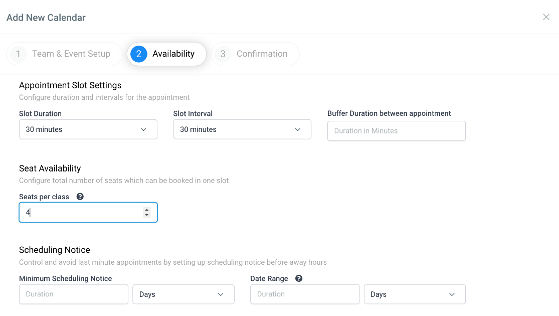 For example, if you set the maximum number of seats per slot to 10, then up to 10 invitees can book a single time slot. Ten attendees can book a class or training session at 1:00 PM.