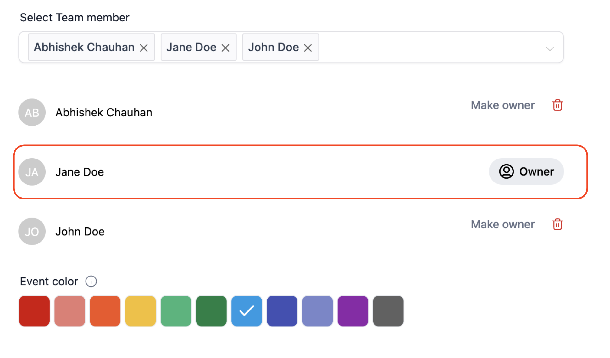 By default, the first team member added to the collective booking would be made the primary owner and the primary owner in the Collective booking cannot be deleted.