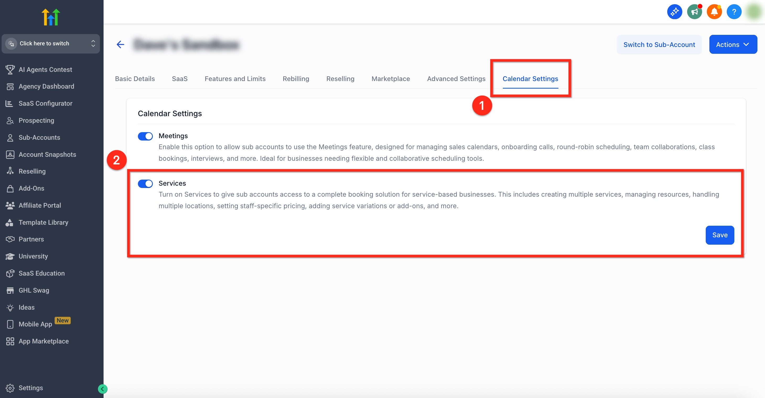 You can enable Services for sub-accounts directly from Agency Settings. Follow these steps to activate Services in a single sub-account!