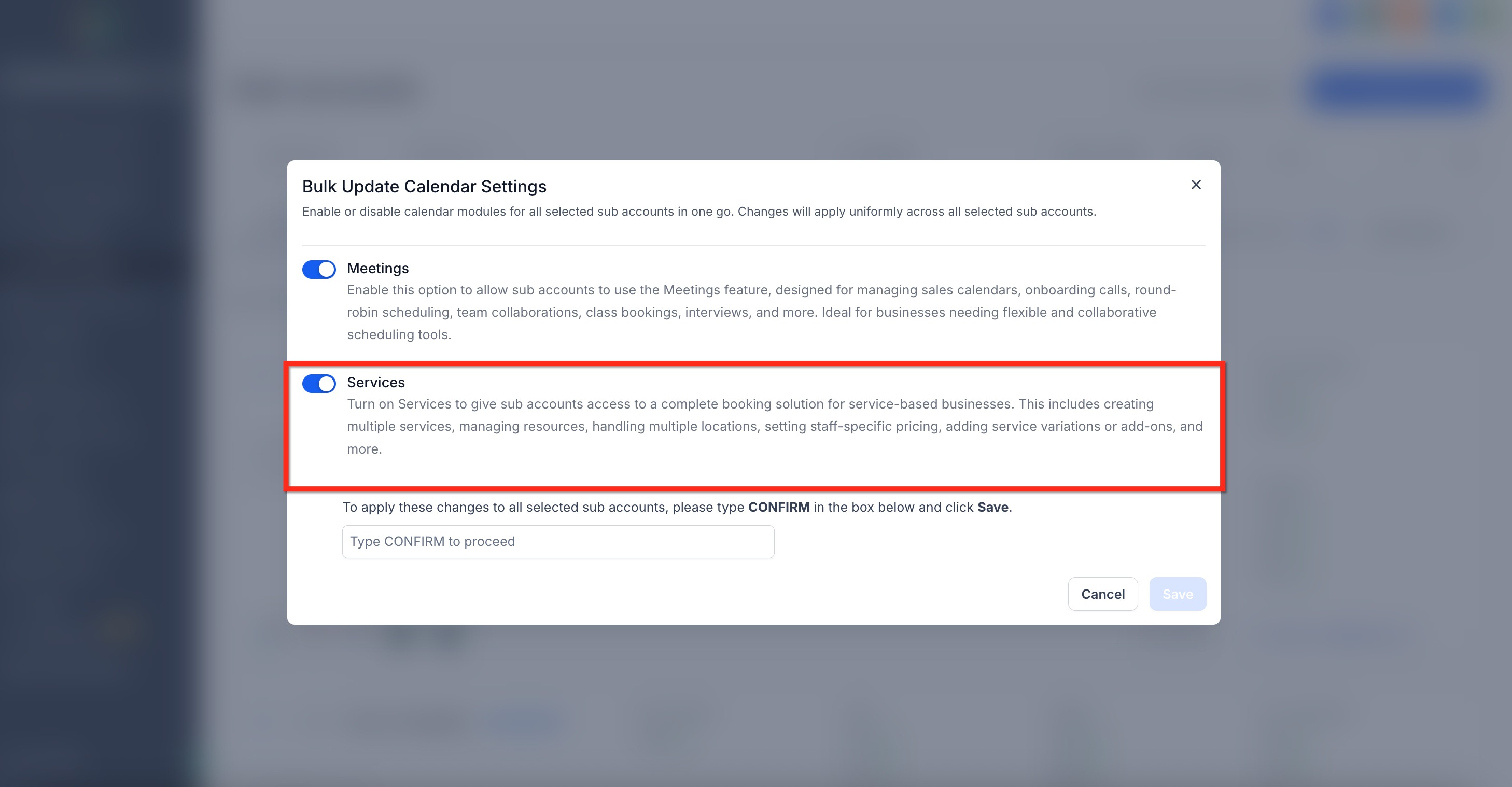 You can enable Services for sub-accounts directly from Agency Settings. Follow these steps to activate Services for multiple sub-accounts at once!