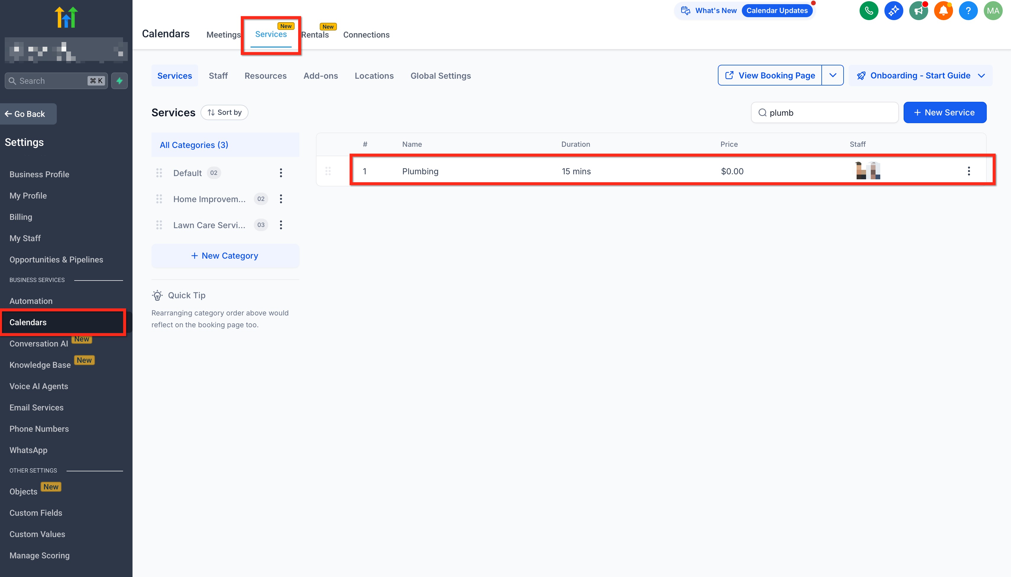 In your Sub-Account, Click on Settings → Calendars → Services → select the Service to edit.
