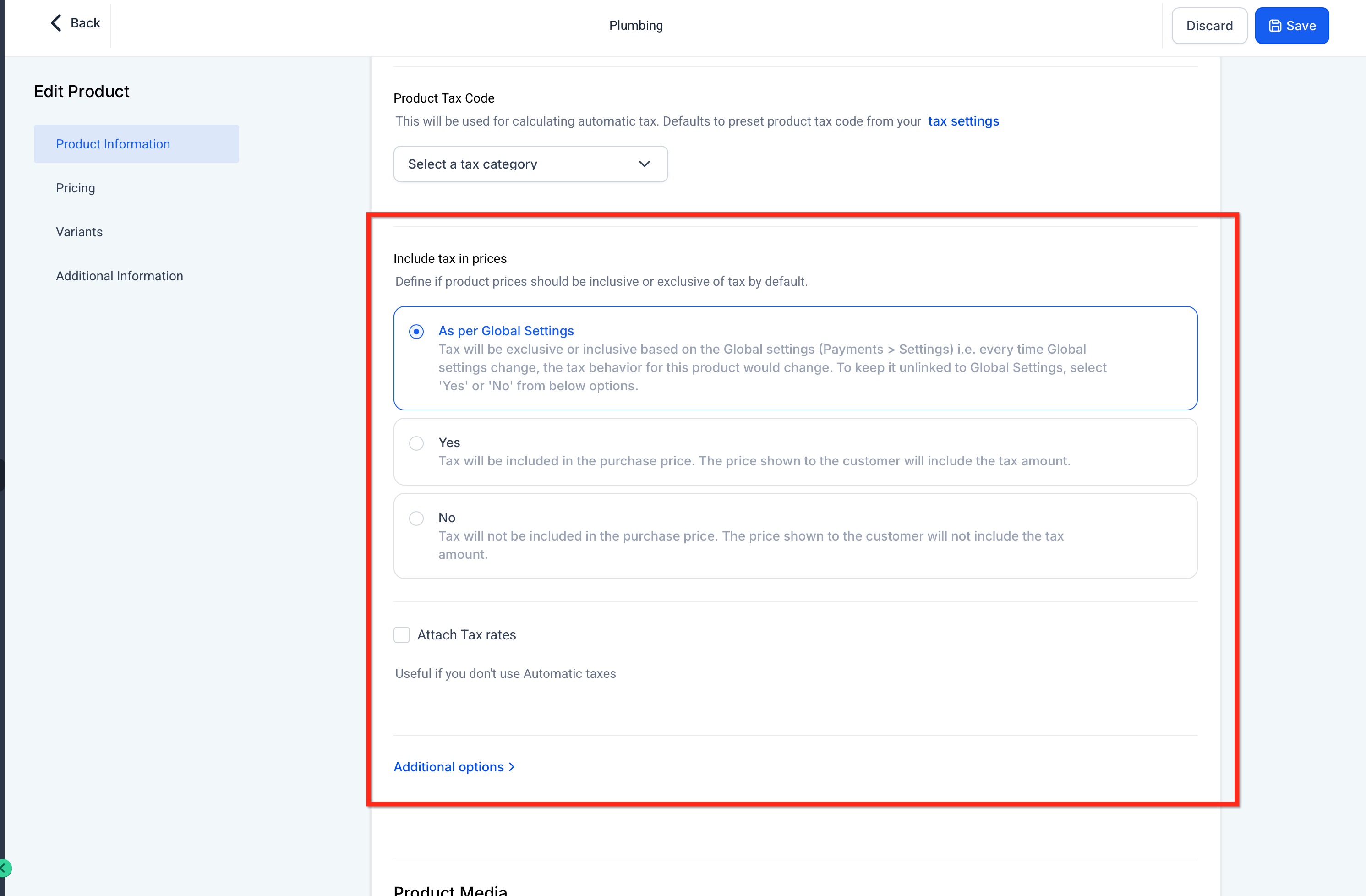 In the linked Product window, choose Add Tax Rate or select an existing rate → Save.