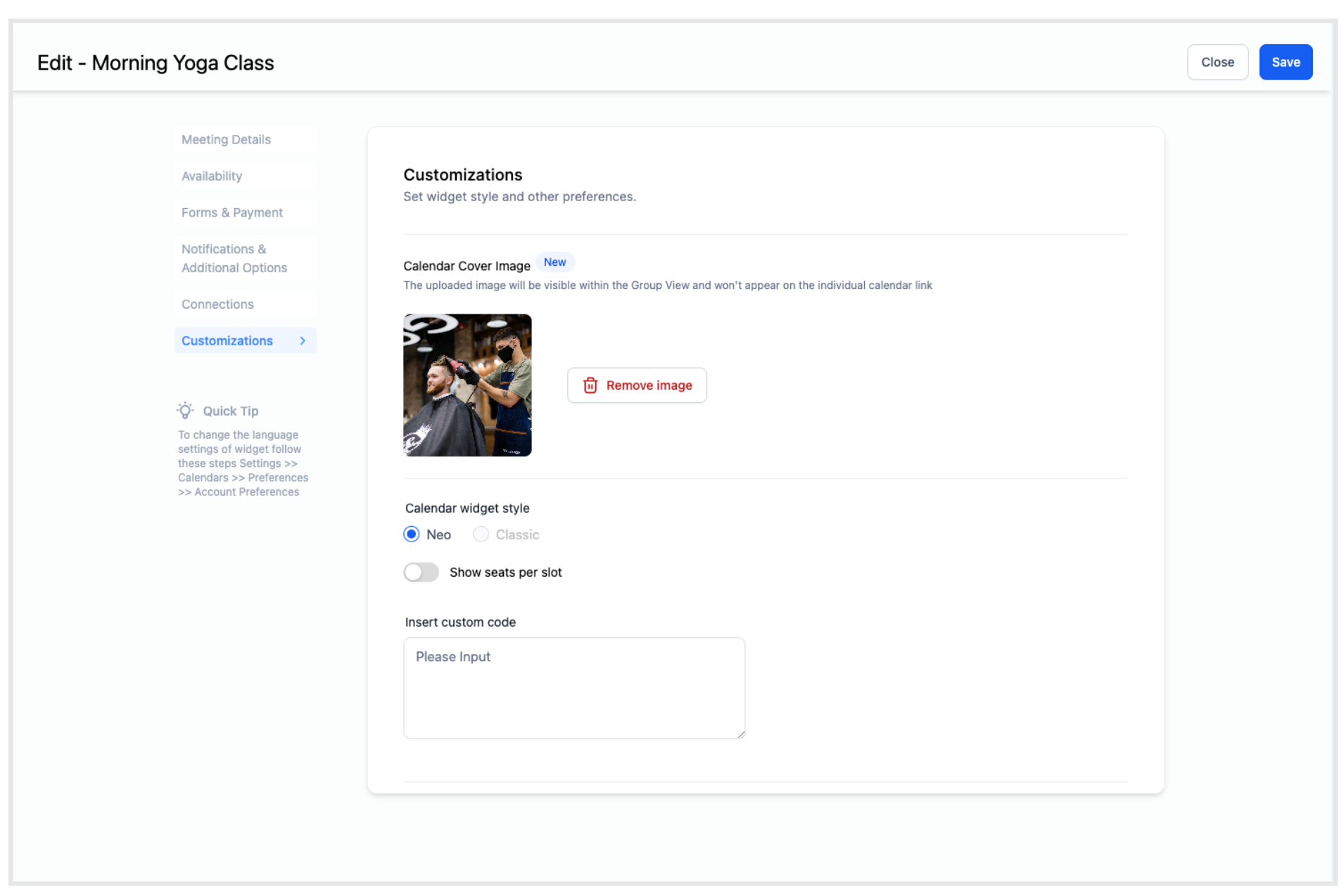 It is recommended to add a calendar cover image, especially if you plan to use the Neo Template. A cover image can enhance the visual appeal and professionalism of your calendar.