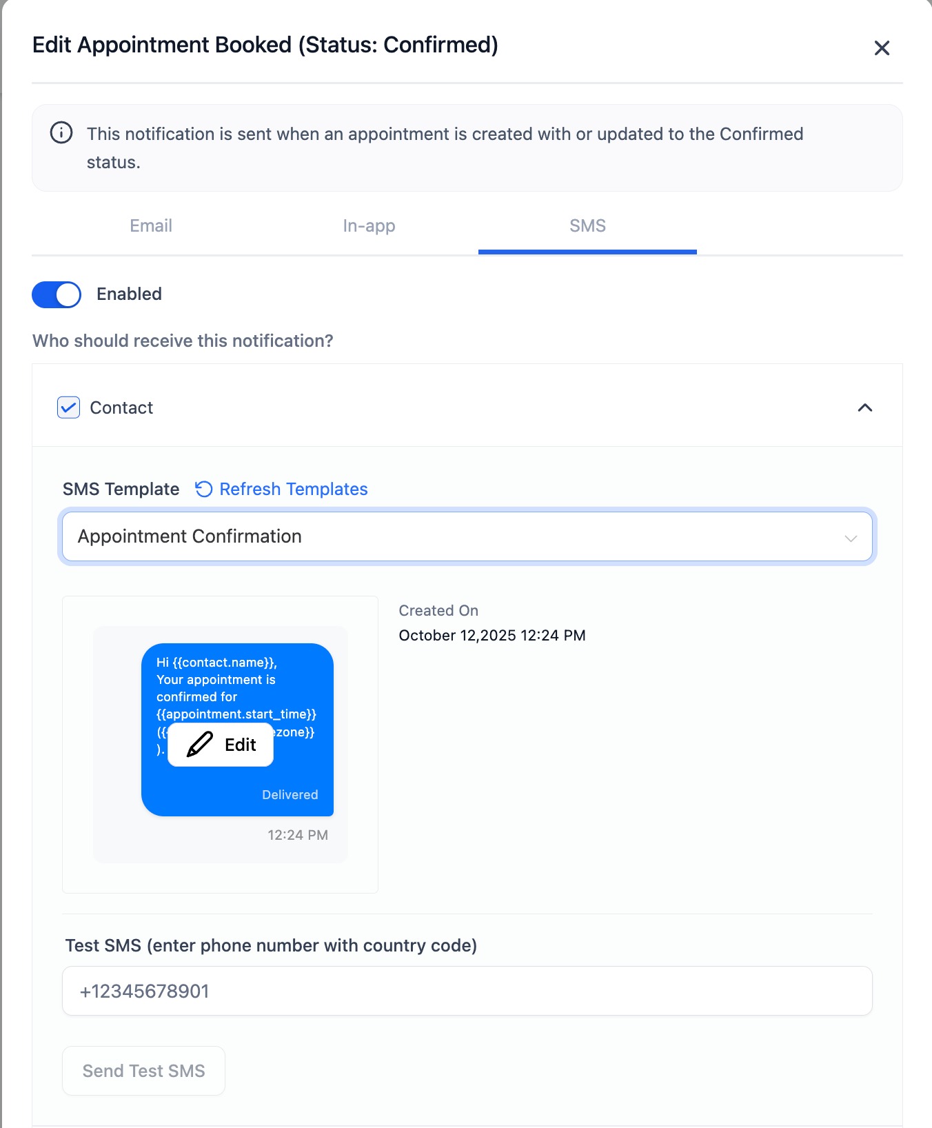 - Optionally, send a test SMS to see how the notification looks.