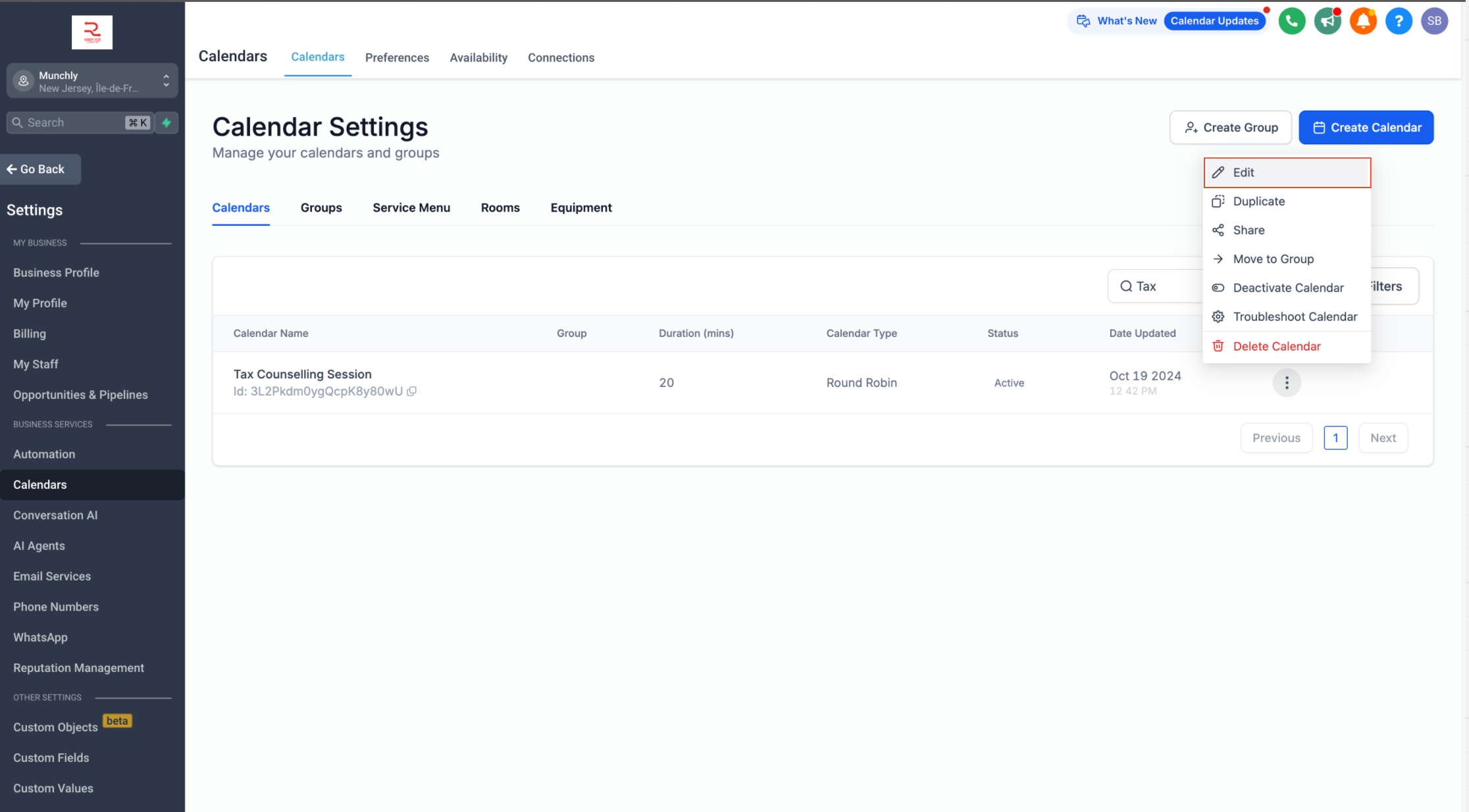 - Select the calendar you wish to configure.