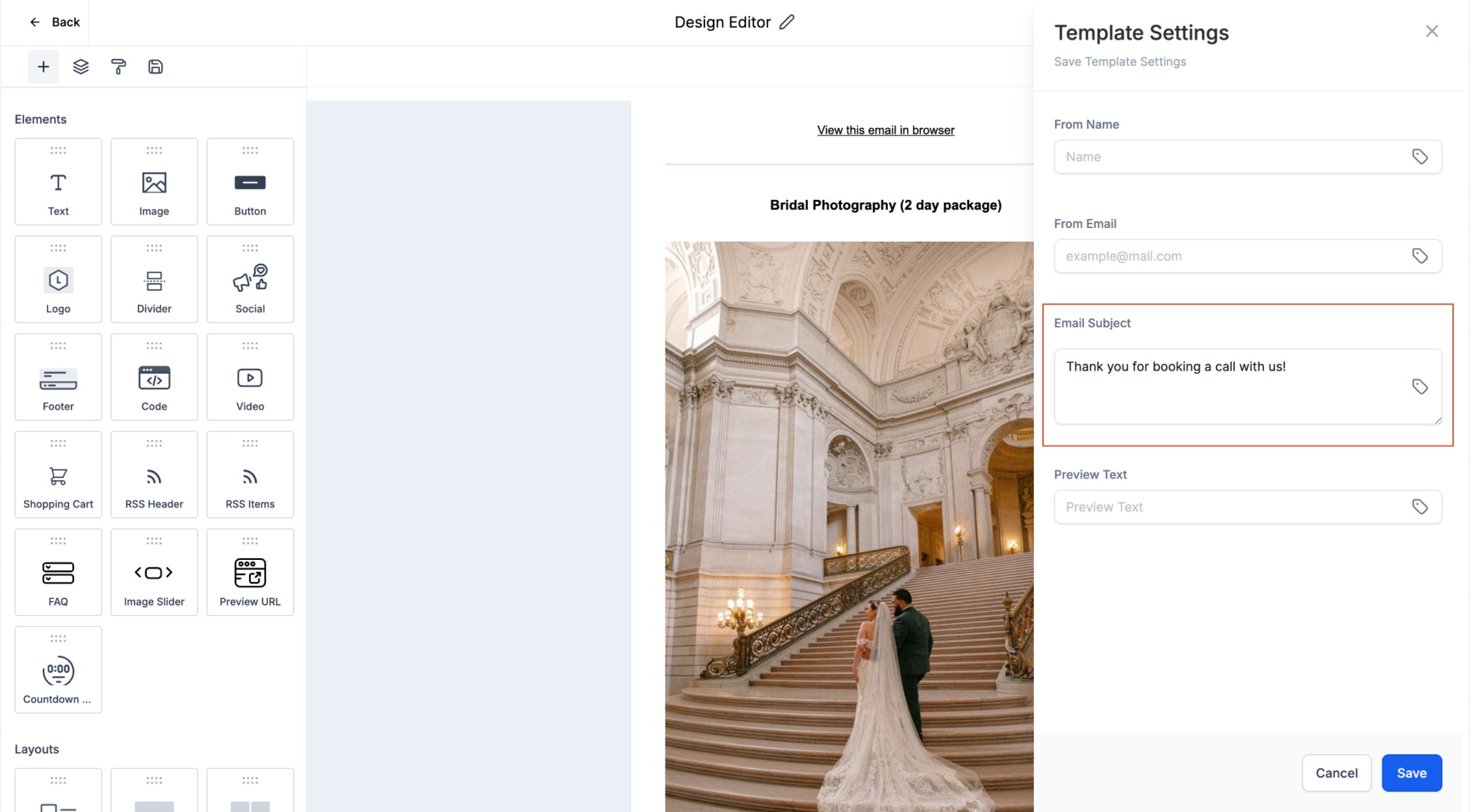 - You can create your email templates through the Email Builder in Marketing module > Emails > Templates.