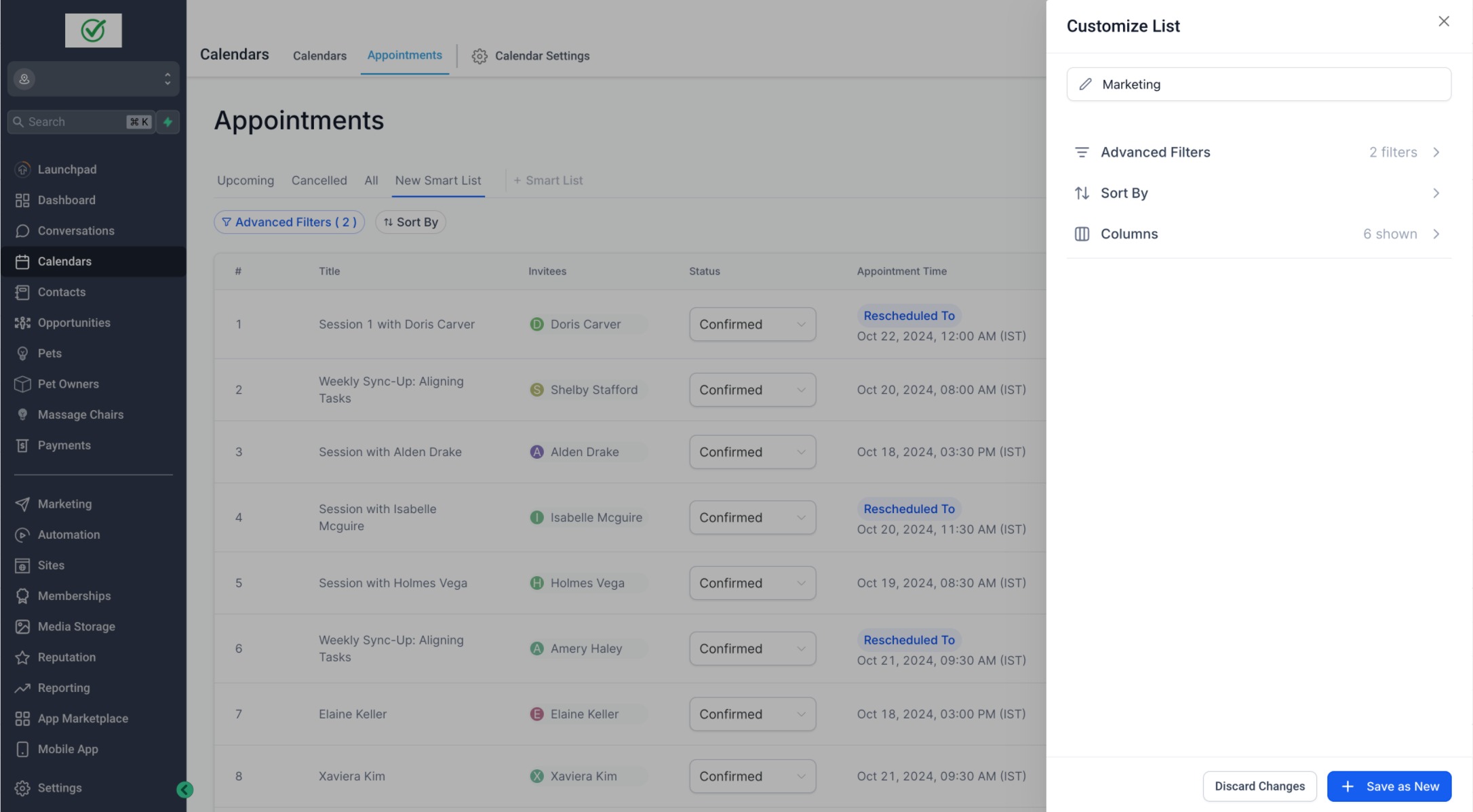 In addition to the default lists, users can create Smart Lists to quickly access appointments based on custom filters. This feature is particularly useful for businesses that require different views to effectively manage their appointments.