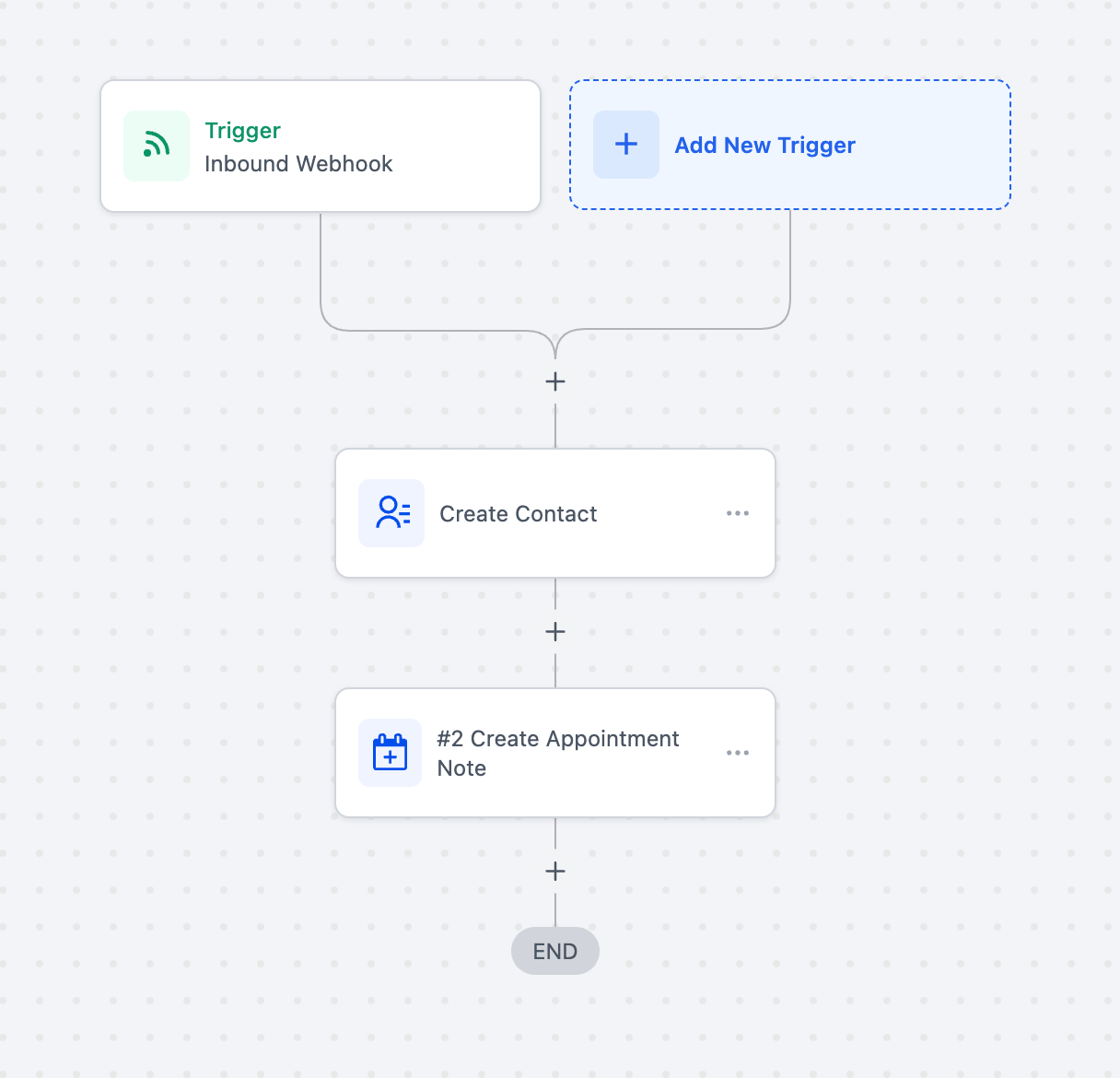 Choose a trigger such as Inbound Webhook, Appointment Status, or Customer Booked Appointment.