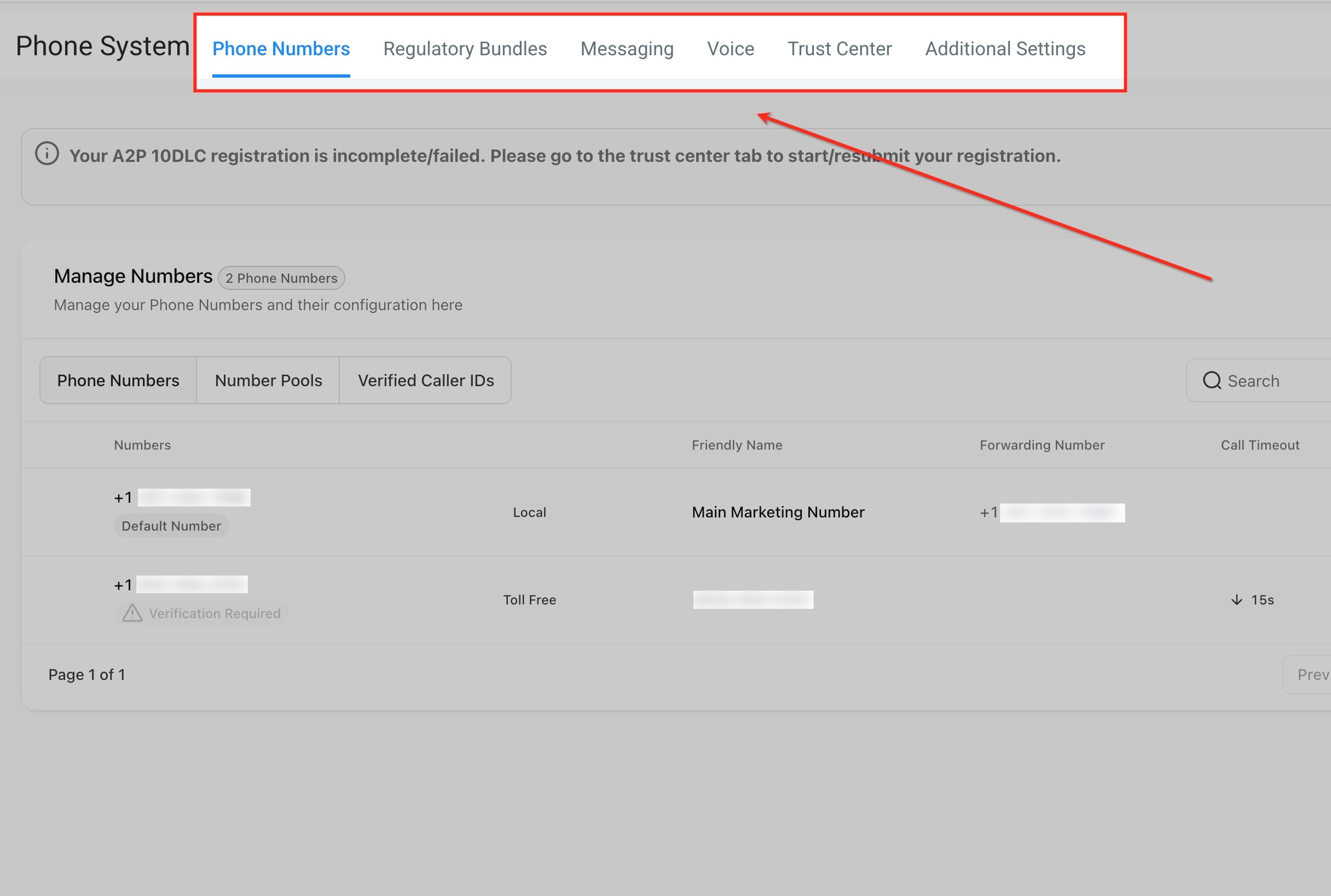 Trust Center: Manage brand identity and campaign approvals directly within the Trust Center. Here you can register A2P 10DLC brands and campaigns, configure CNAM for caller ID, and enable SHAKEN/STIR protocols along with other caller-trust tools to protect your communications.
