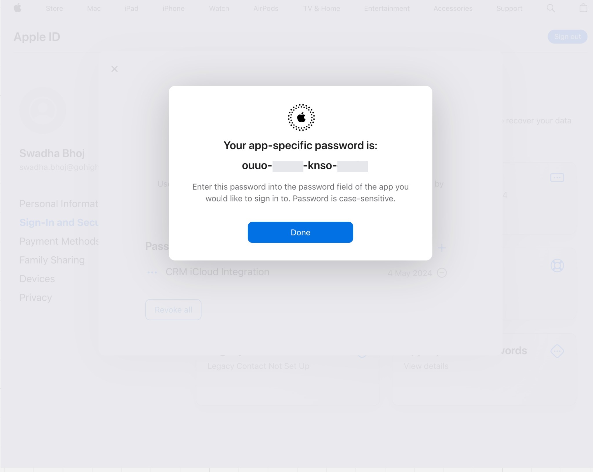 Step 1e: Save The App-specific Password