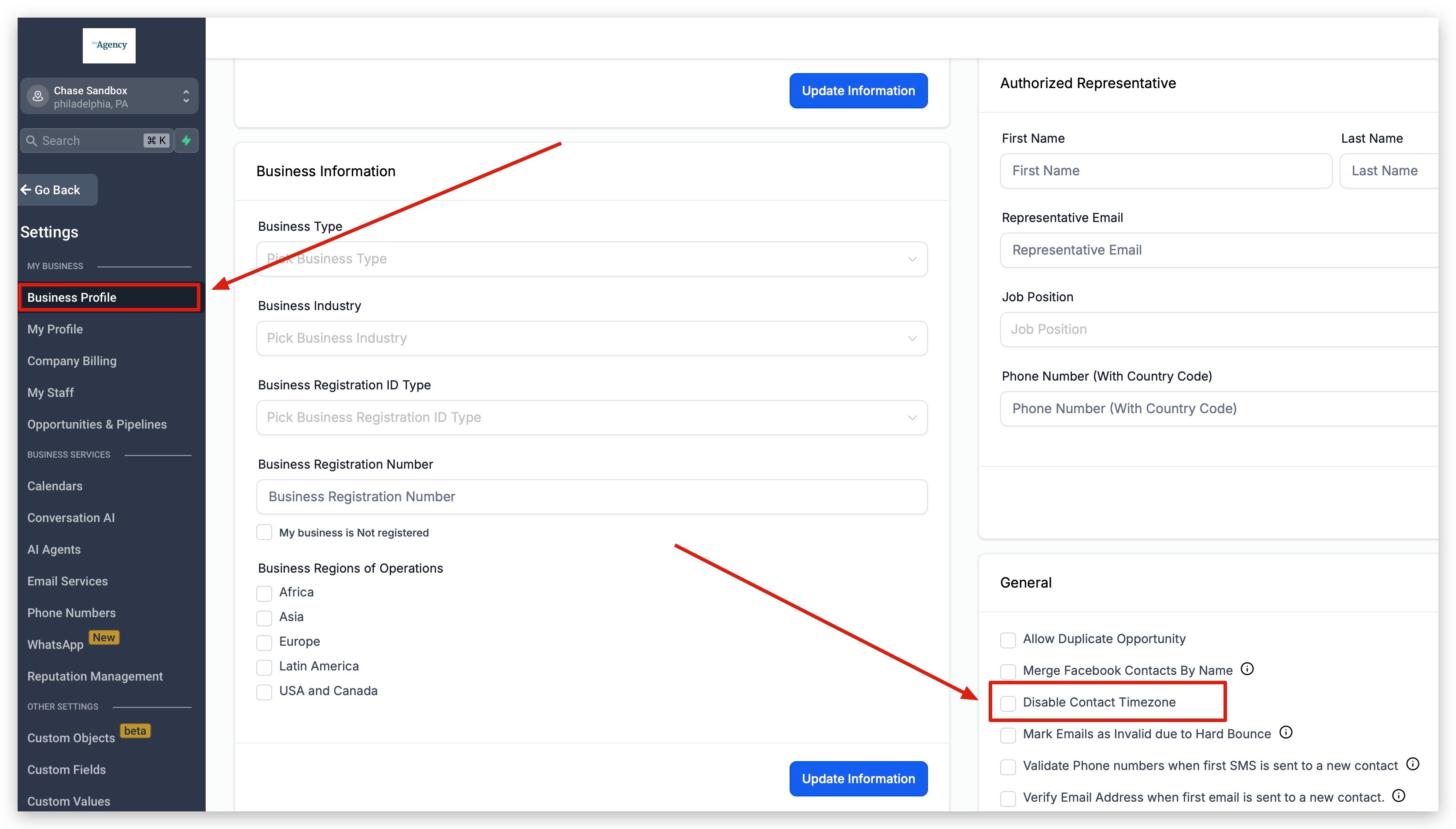 Click Here To learn more about BUSINESS PROFILE settingsHow to Set Your Business' Timezone (Sub-Account)