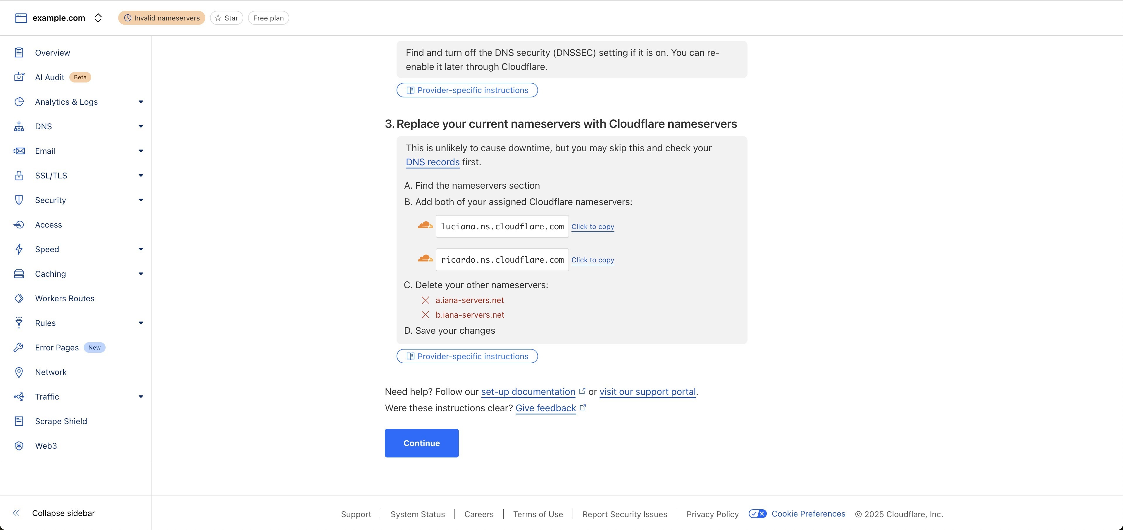 ⚠️ Note: “Invalid Nameservers” Status