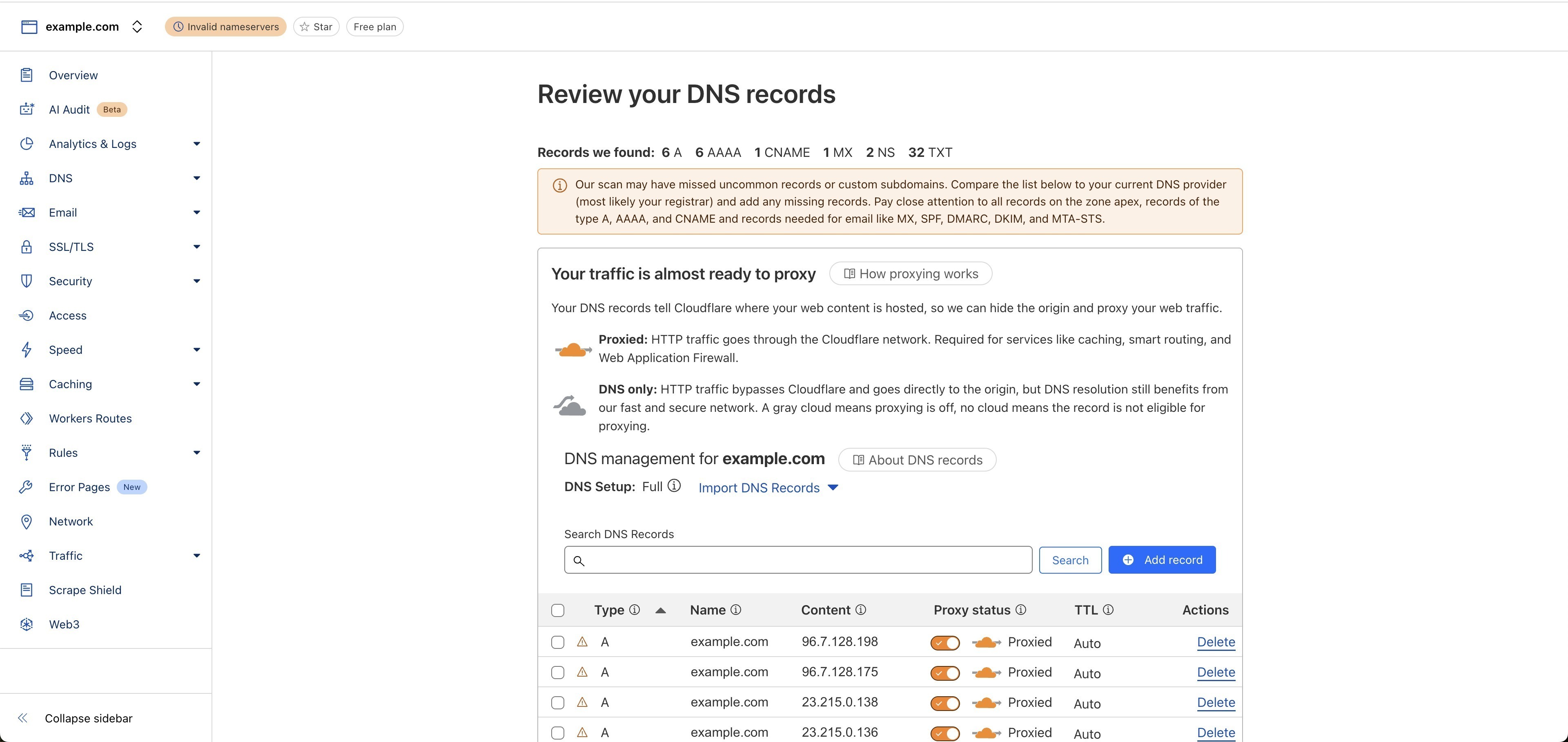 Cross-check your scanned DNS records with your current DNS records. You can find your current DNS records here: