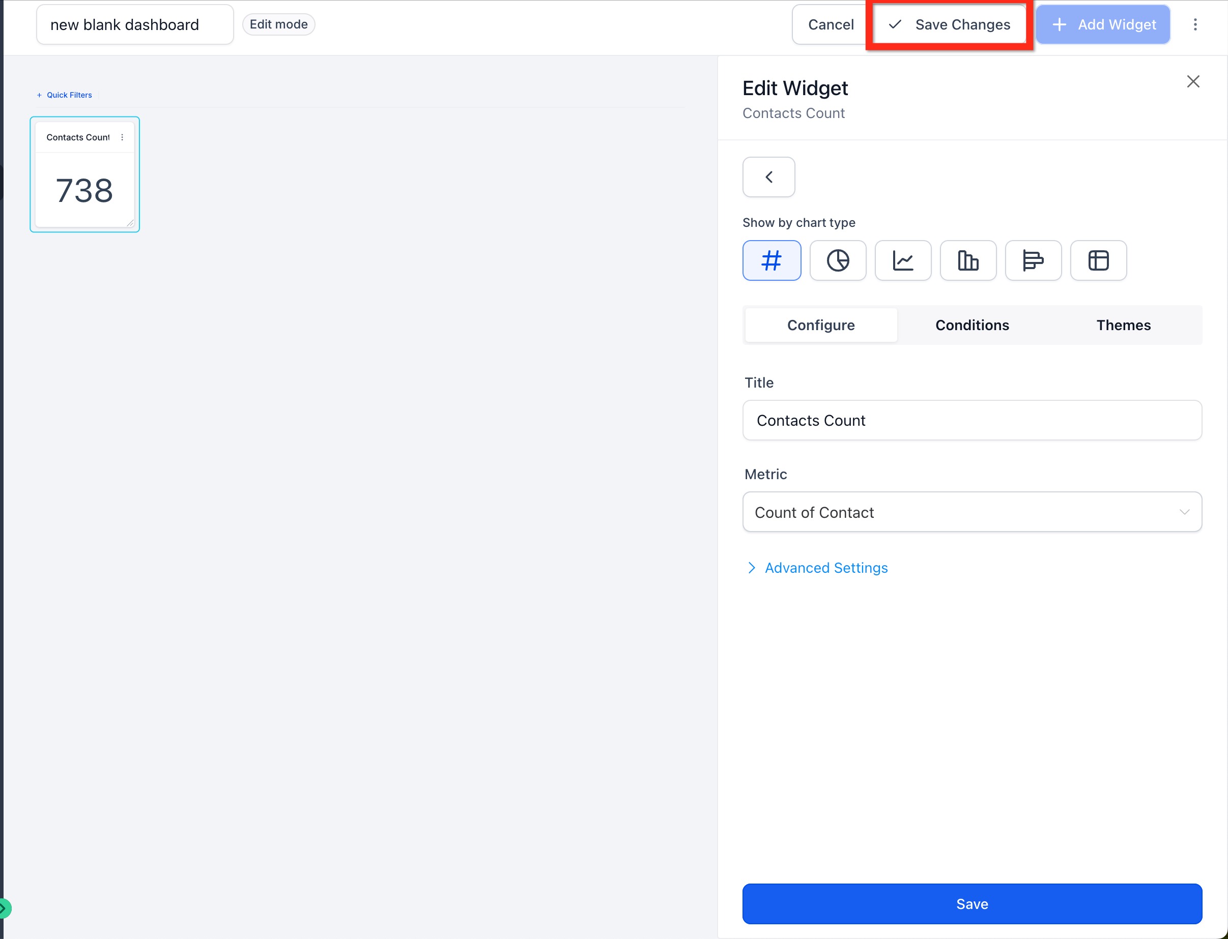 Click the "✓ Save Changes" button to finish. This saves your layout and exits edit mode.