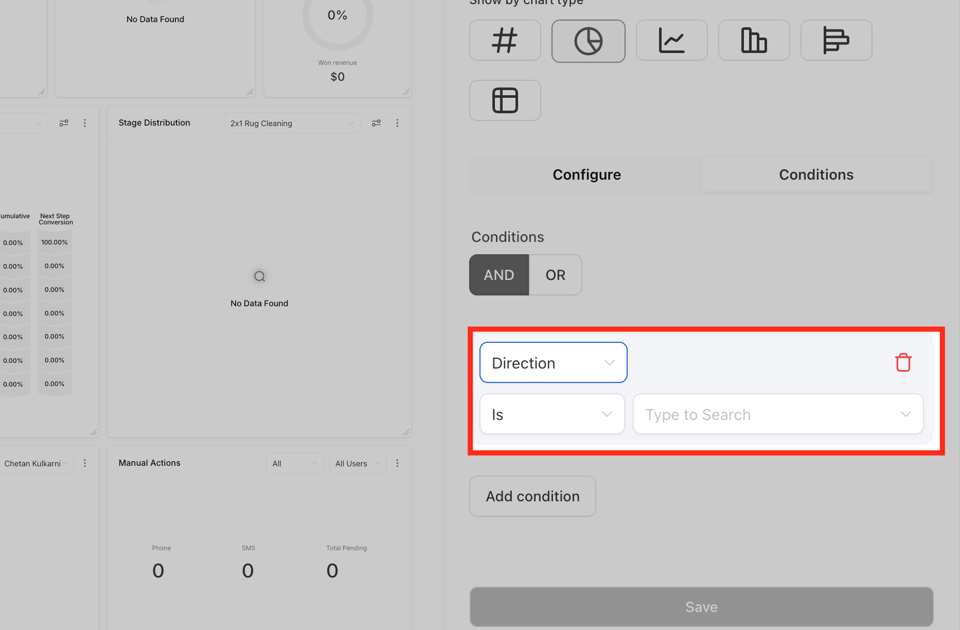 1. Click Add Condition under the “Conditions” tab.