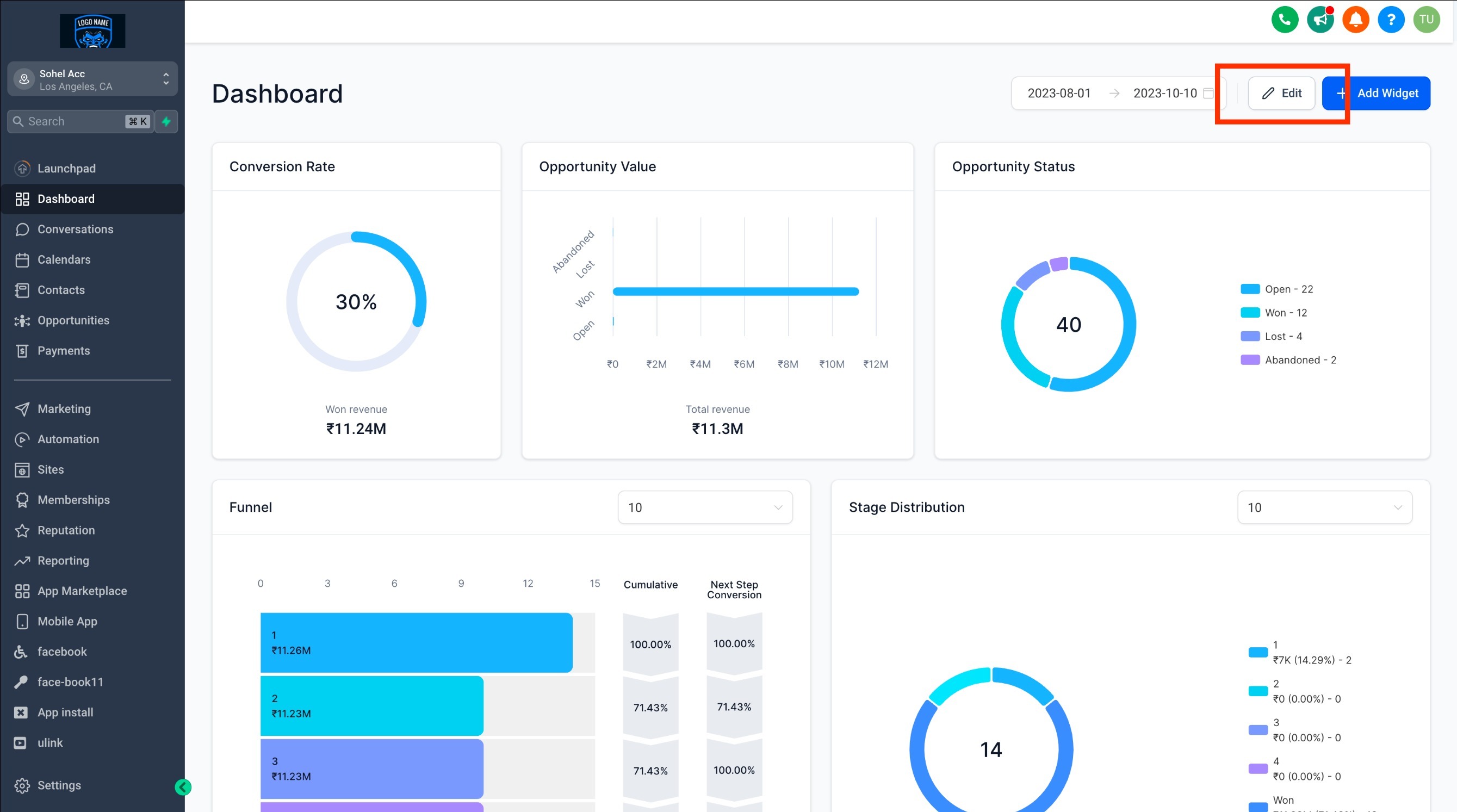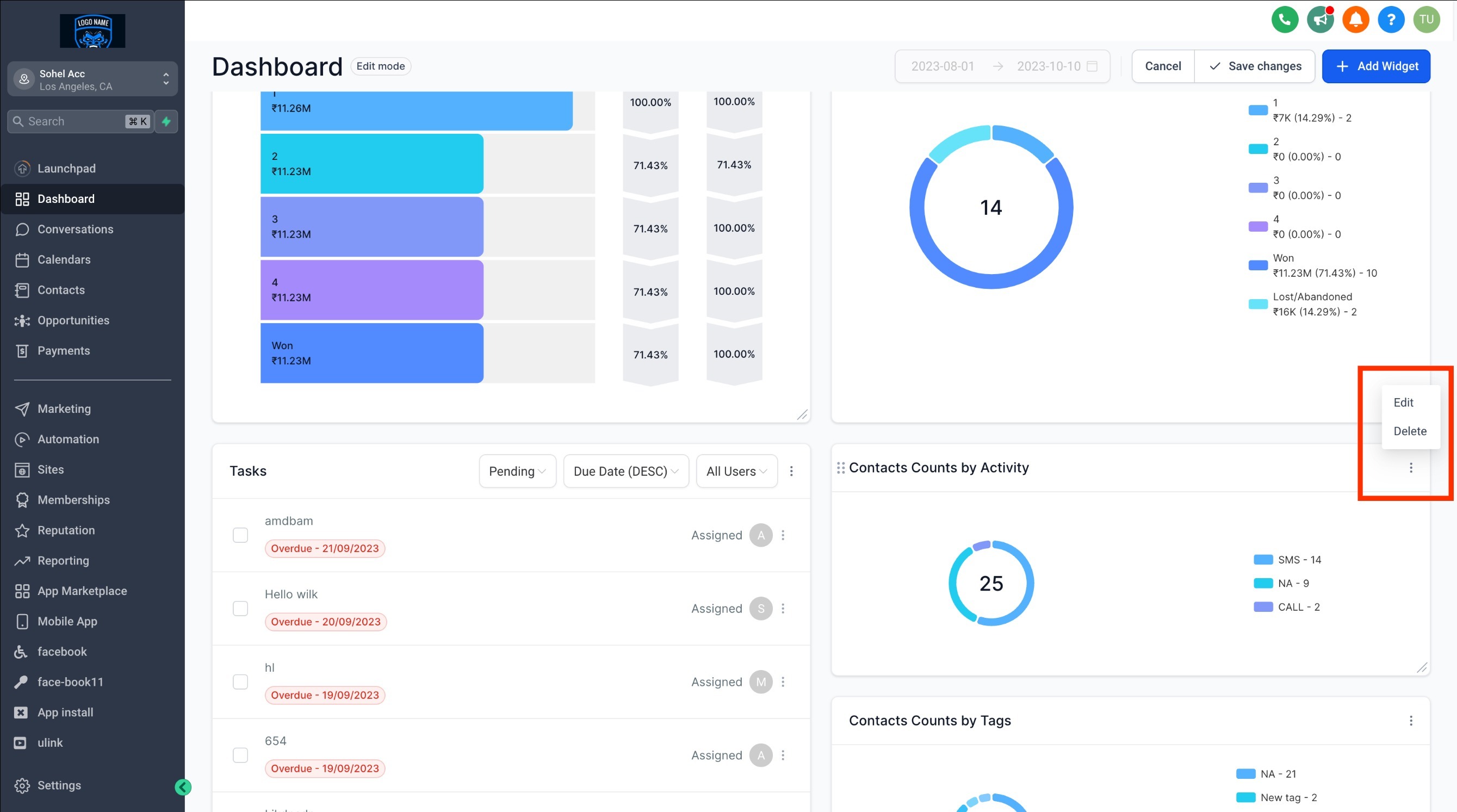 • To edit a widget, locate the three-dot menu in the top-right corner of the widget you wish to edit. Click on it, and from the dropdown menu that appears, select "Edit."