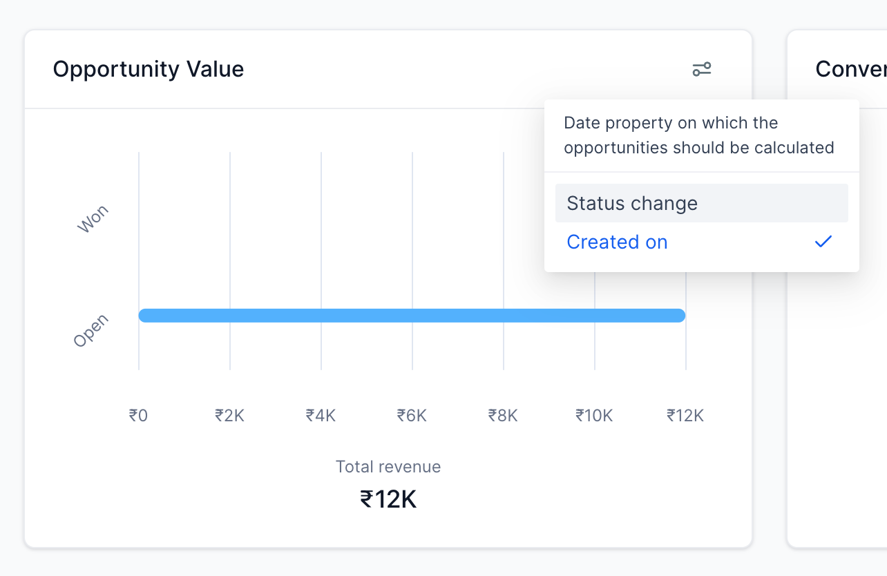 - For General Widgets: Click on the filter icon on the widget and switch the date property. Changing it on one filter will automatically update it for the remaining general filters.