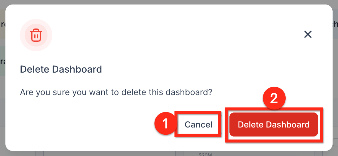 7. Delete Dashboard Button - Looks like "Delete"Click to erase the dashboard permanently.