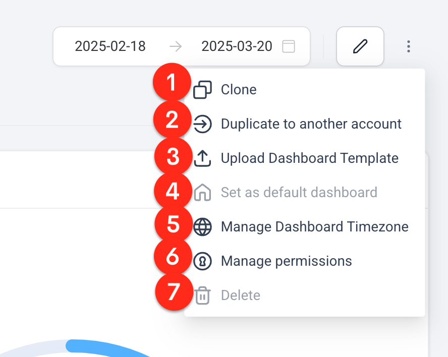 2. Duplicate to Another Account Button - Looks like "Duplicate to another account". Click to make a copy of this dashboard in another subaccount.