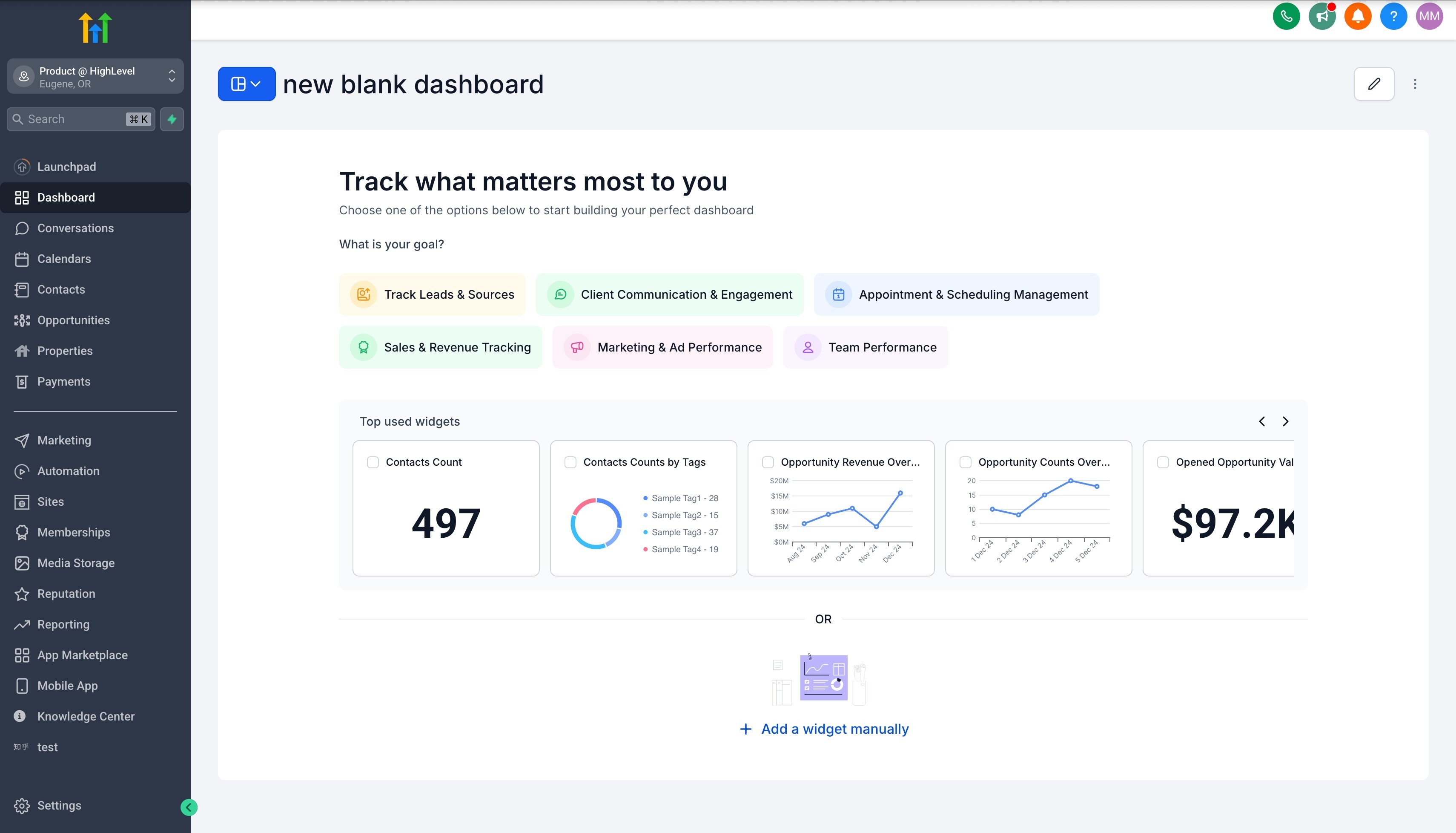 • With Widgets (1 or more) - The normal state of a dashboard is to have multiple widgets and elements.