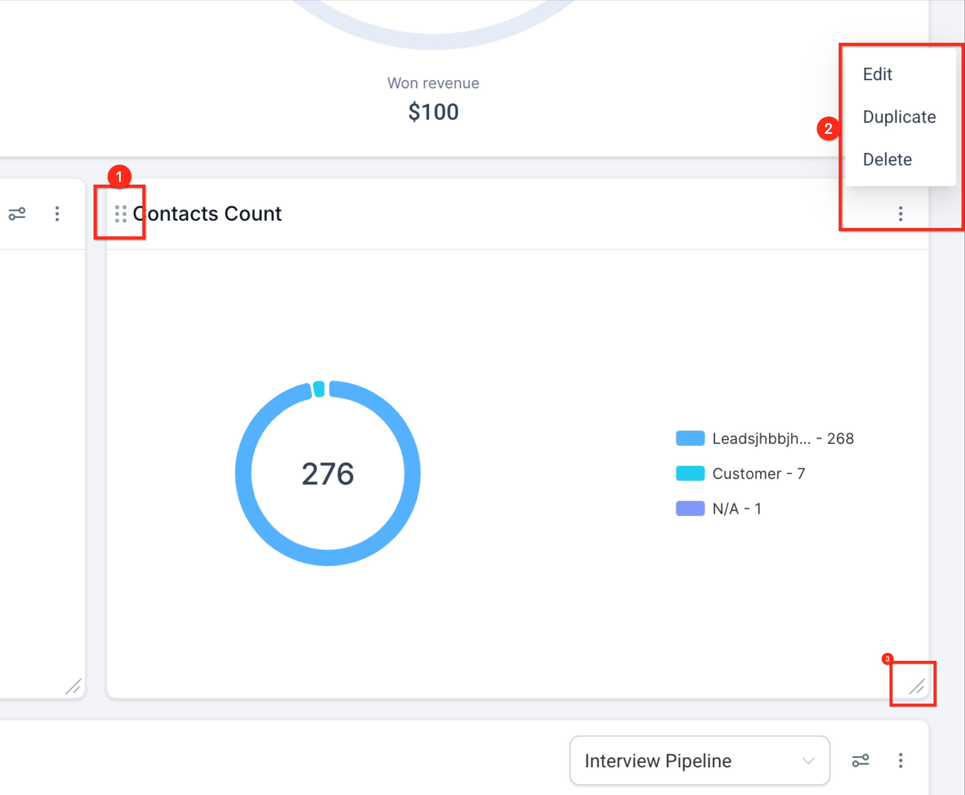 1. Drag and Drop Handle - 6-dot icon. Click and hold to drag the widget to a different location.