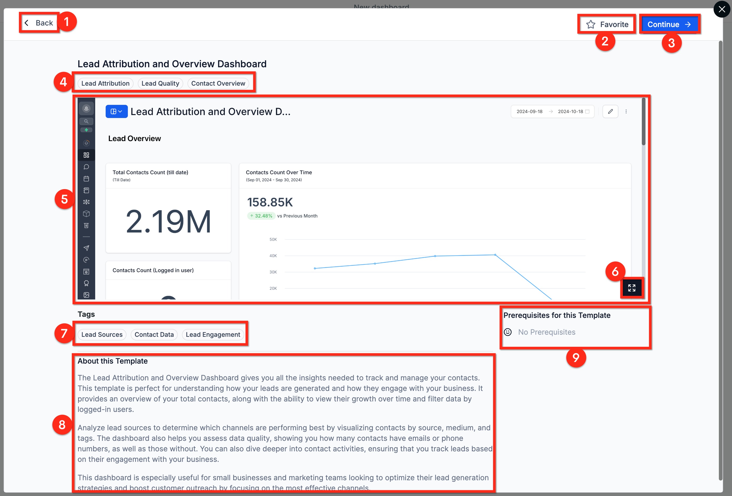 3. Upload Dashboard Template Button - Looks like "Upload dashboard template". Click to upload a dashboard template.