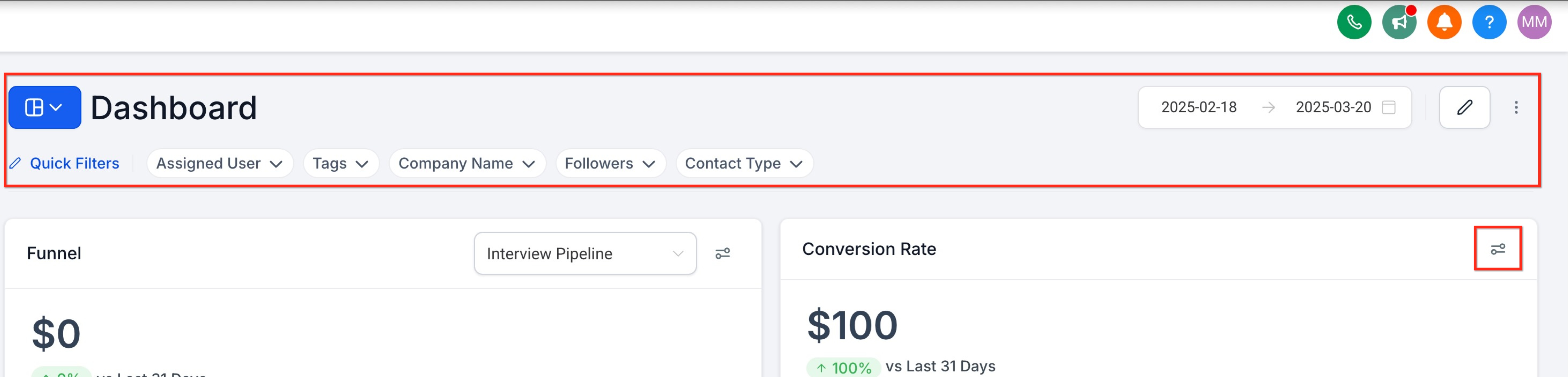5. Quick Filters Button - Blue pencil icon and "Quick Filters". Click to open the quick filters side panel.