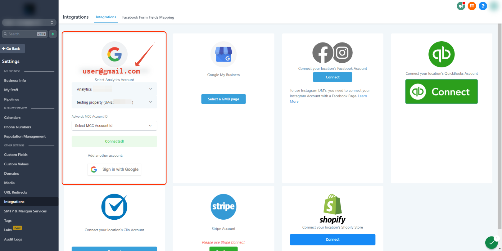 1. Make sure your Google Ad Account Integration is connected to the CRM.