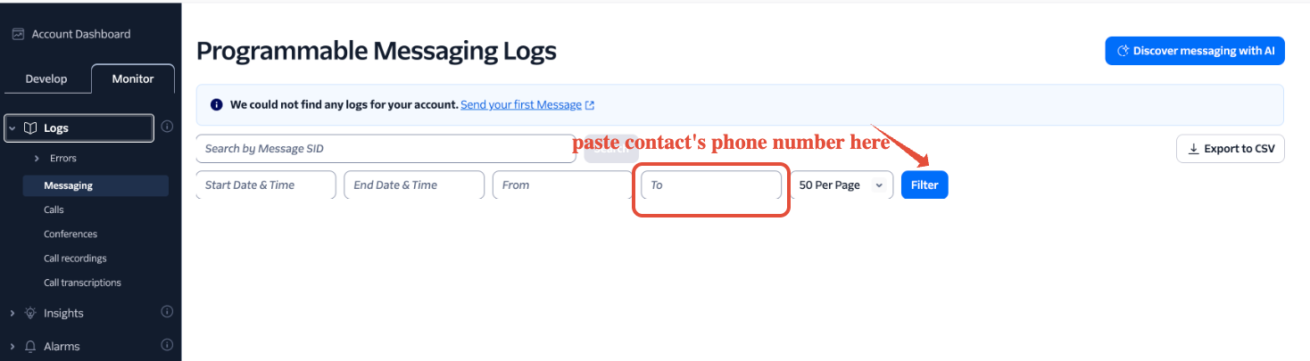 Twilio provides tools to investigate messaging activity between Twilio and your application. If a message fails to go through, is delayed, or behaves unexpectedly, reviewing the Messaging Logs in Twilio should be your first step. These logs help you confirm delivery status, identify errors, and gather details for further troubleshooting.